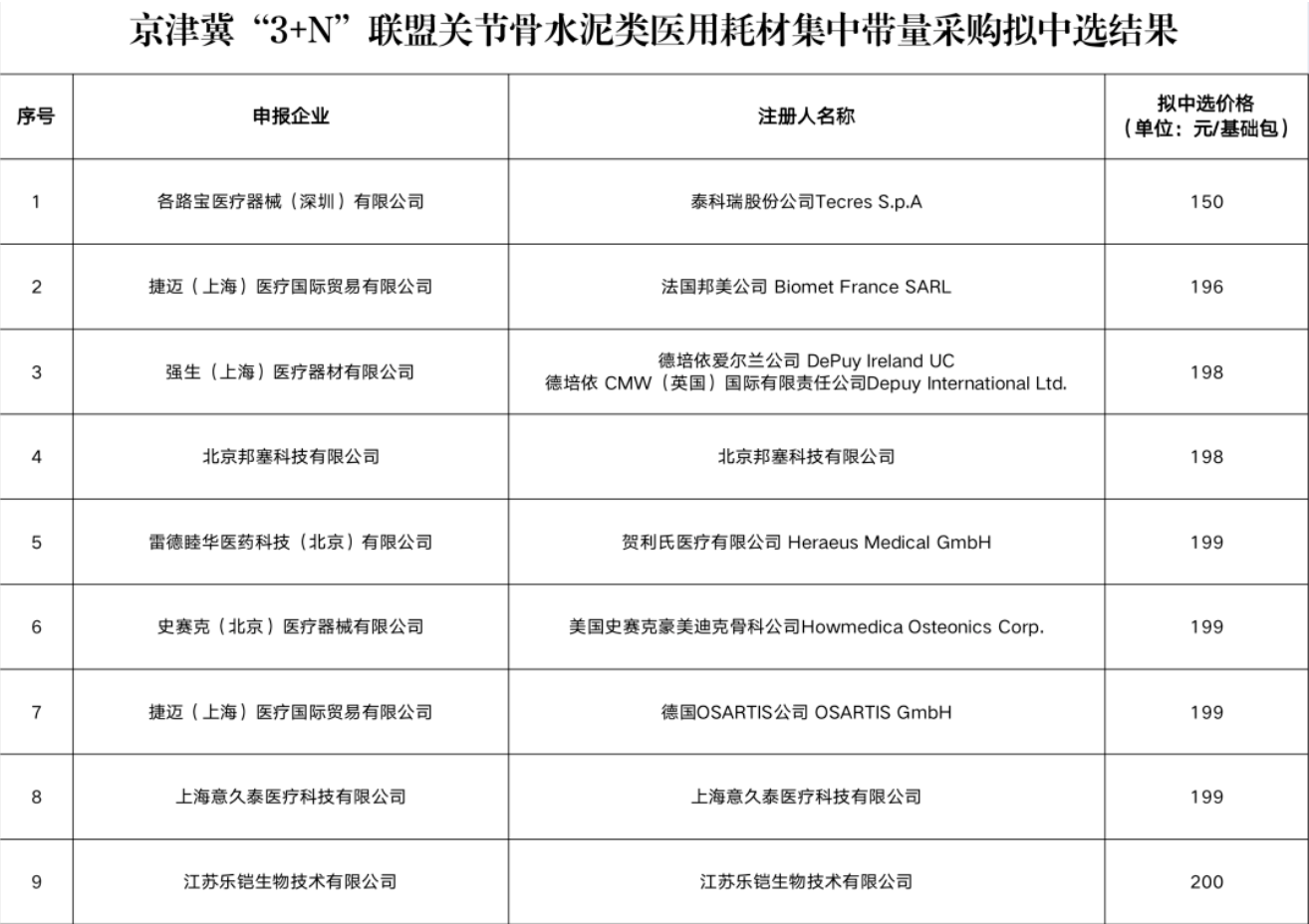 《通知》指出,將于7月26日起正式執(zhí)行京津冀“3+N”聯(lián)盟關(guān)節(jié)骨水泥類(lèi)醫(yī)用耗材集中帶量采購(gòu)及肝功生化類(lèi)檢測(cè)試劑省際聯(lián)盟集中帶量采購(gòu)中選結(jié)果。